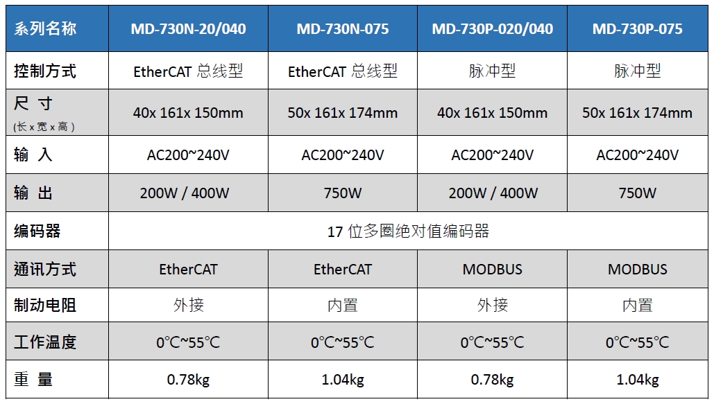 MD-730系列: 200W~750W伺服驱动系统
