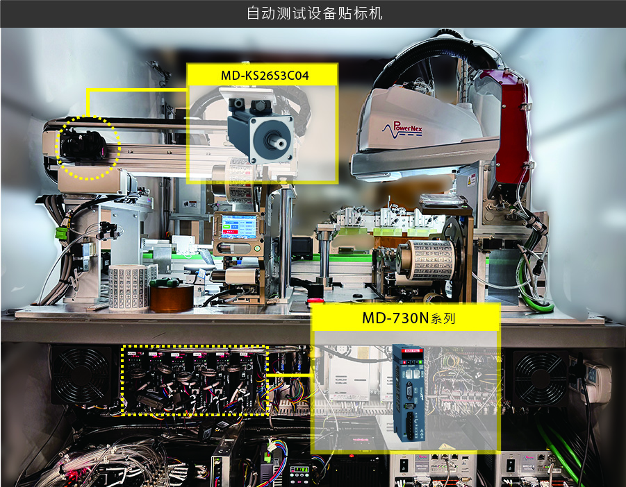 MD-730系列伺服驱动器作为一种结构紧凑的系统解决方案,采用新一代功率器件及创新型设计,显著减少了所需的整体空间,大幅提高了驱动系统布置的灵活性。集成通讯接口,与控制系统的连接快捷简单,提供一键上下载 & FOE 功能,提升生产效率。2 kHz 速度环带宽,命令追随更快,有效缩短位置到达的整定时间。全系列采用更高性能的主控芯片,通讯交互能力进一步提升,针对 EtherCAT 所有运行模式均可支持 125μs 同步周期。通过 EtherCAT分布时钟的精准调整,实现 300 个节点120 m距离、15 ns同步误差、±20 ns同步抖动。位置环控制与同步信号同步,进一步提升多轴控制的同步性。强化抖动抑制功能,可以同时抑制装置末端的2种低频抖动,伺服驱动器和伺服电机均配有温度保护功能,通过传感器直接监控产品的温度状态,尽早发现并预防故障,进一步提高产品安全性。